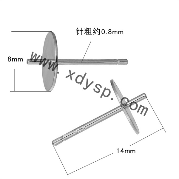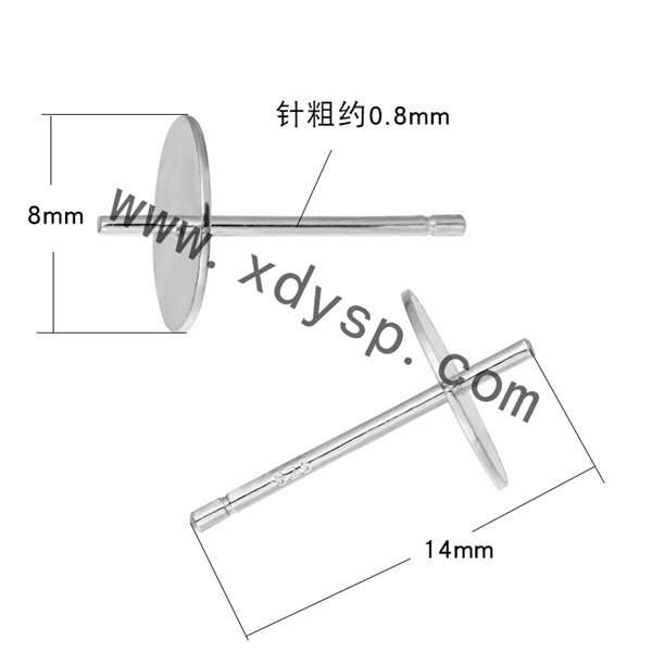 925银平片耳针,规格:14x8mm,针粗:0.8mm,925银耳钉配件,925银耳钉空托,银耳钉diy配件