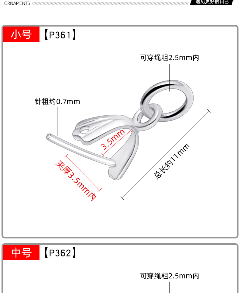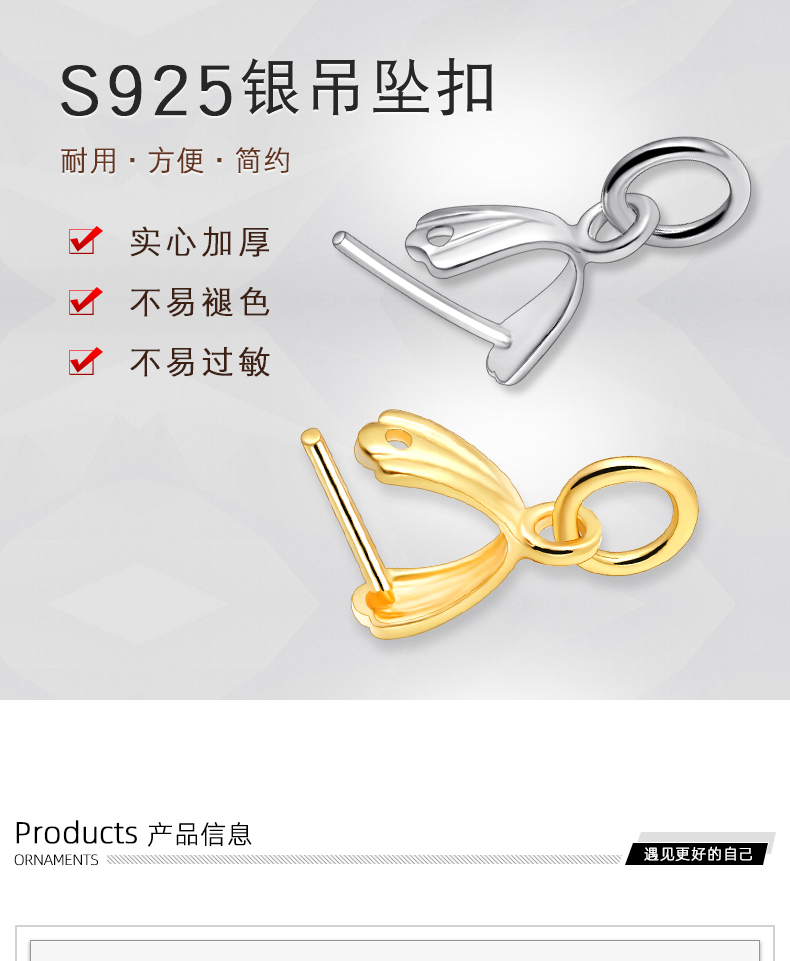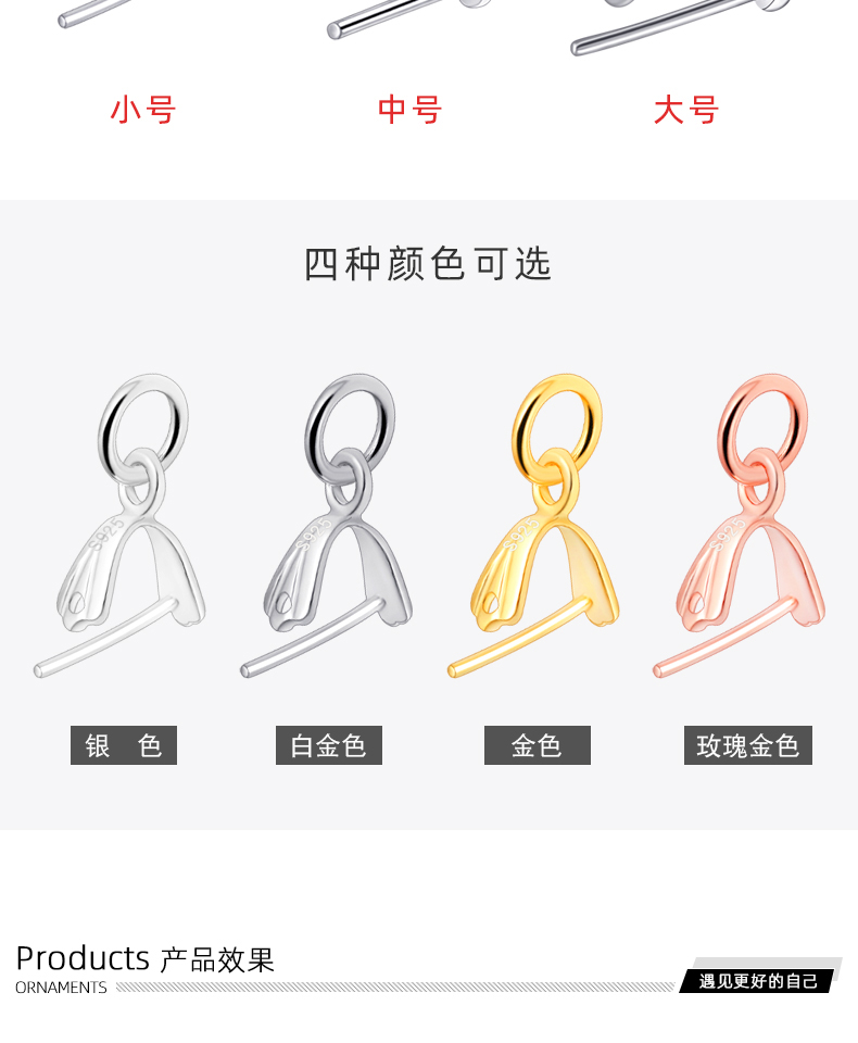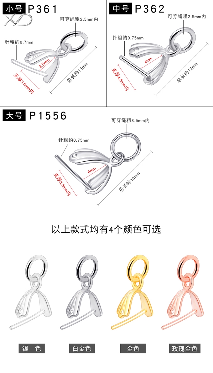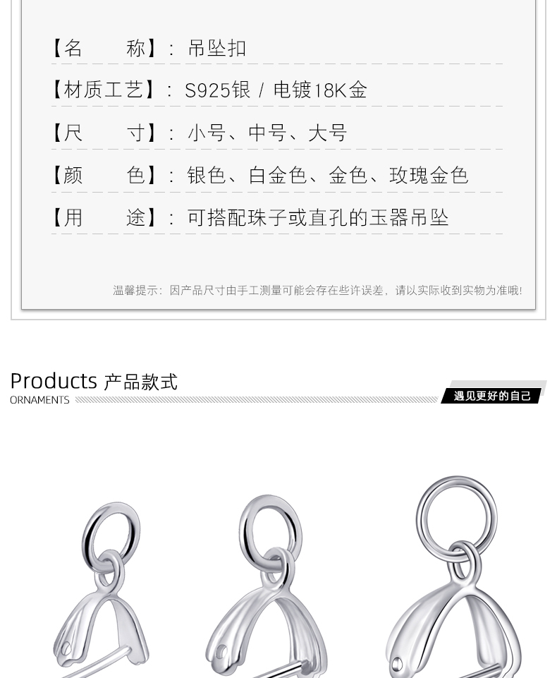 光面穿针吊坠扣,规格不同,吊坠扣银,吊坠扣 925银,吊坠扣头