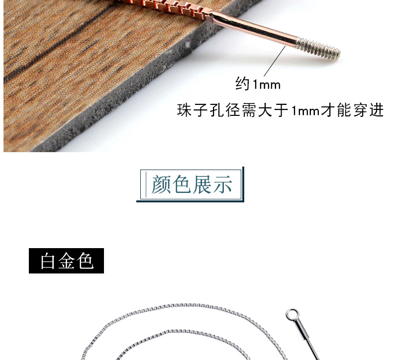 925银串小孔珠项链螺丝扣,规格:0.8mm,银项链,diy串珠项链,925银串珠细链