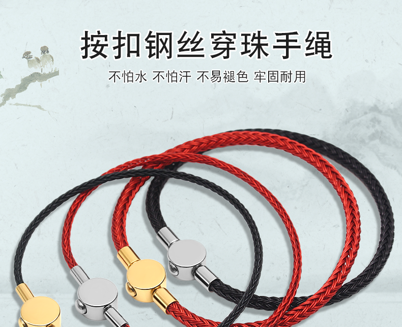 钢丝绳细手绳手链大孔串珠diy穿珠绳红绳编织替换皮绳