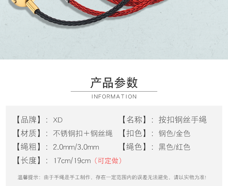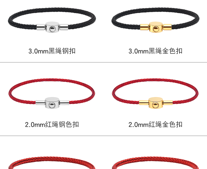 钢丝手绳可穿3d硬金手链绳本命年…