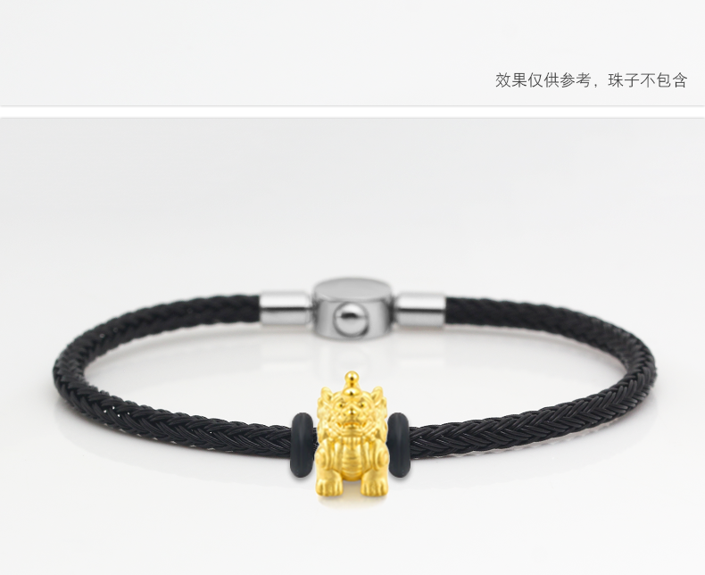3D硬金手链绳穿黄金转运珠编织钢…