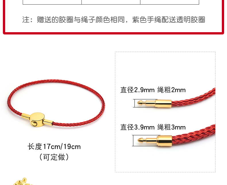 3mm红色绳金色扣19厘米
