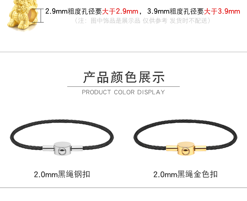 3mm黑色绳金色扣19厘米