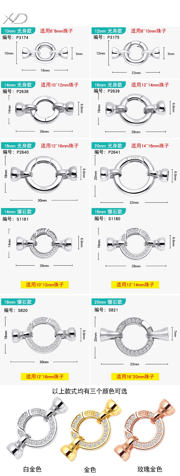 穿串珍珠项链扣S925银手链搭扣连接维修扣毛衣链手串扣头配件 S1181 S1180 S820 S821 P3174 P3175