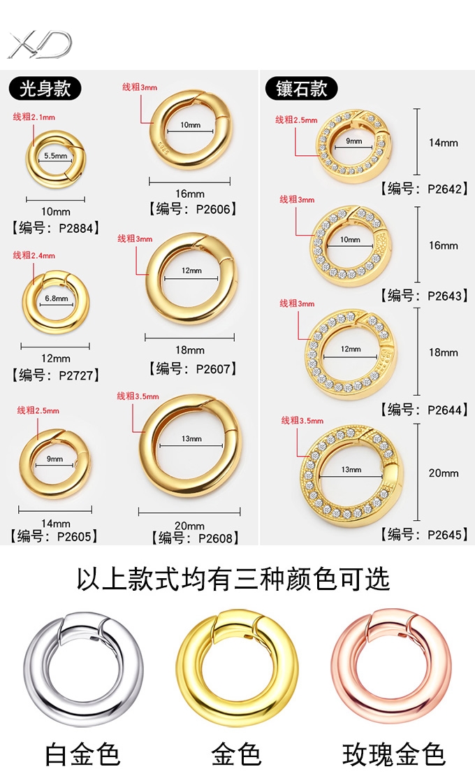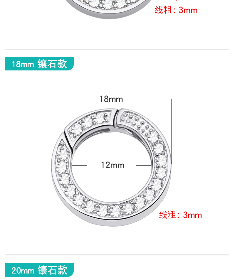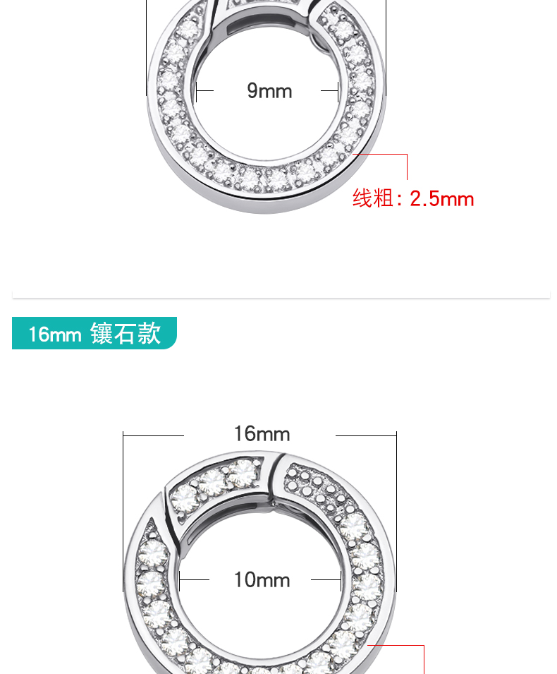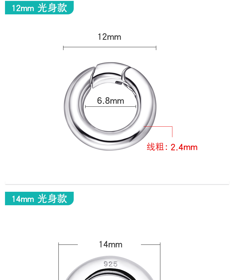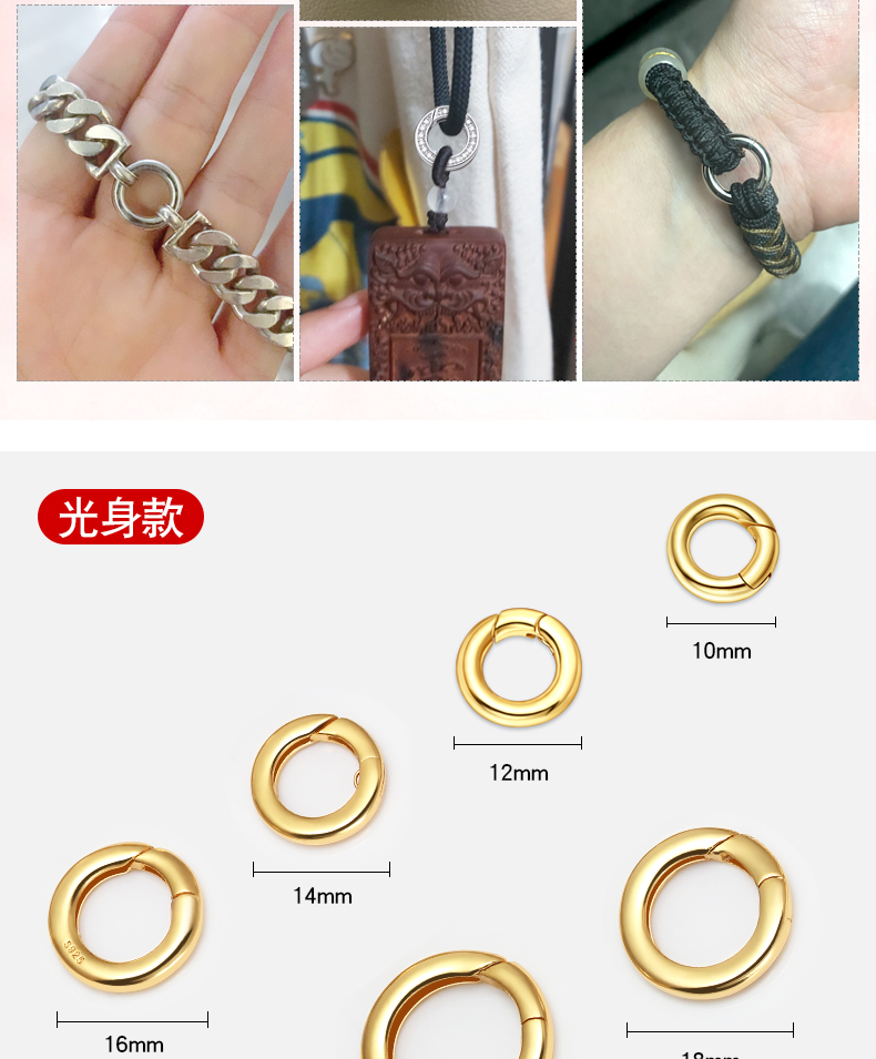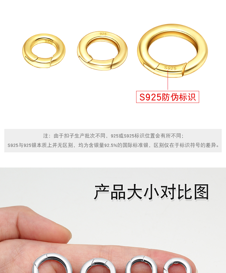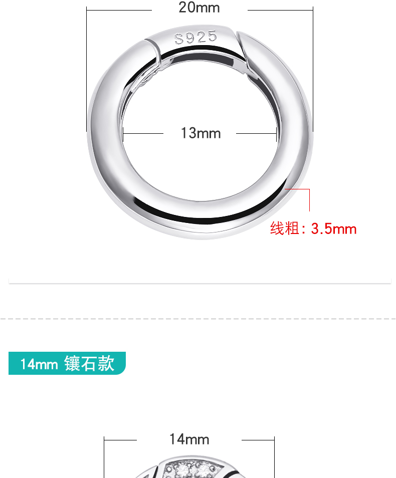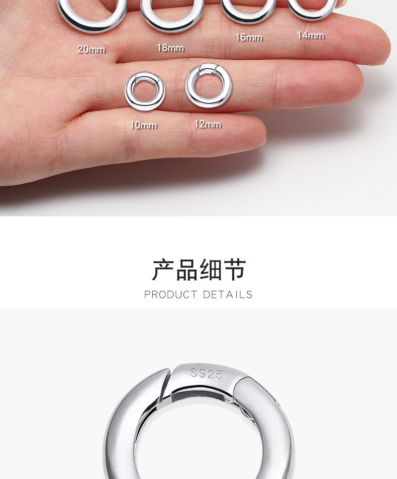 s925银开口圈连接环活口环diy配件手链项链diy配件挂扣银环银圈 P2642 P2543 P2644 P2645 P2727 P2884