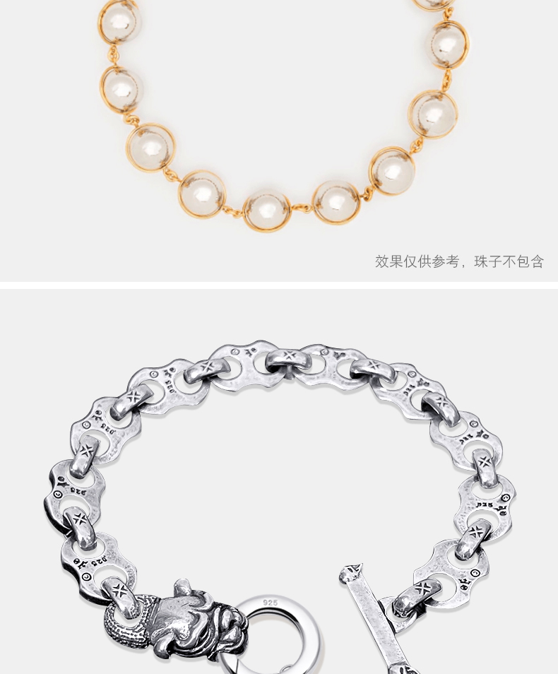 S925银复古做旧珍珠项链扣头连接…