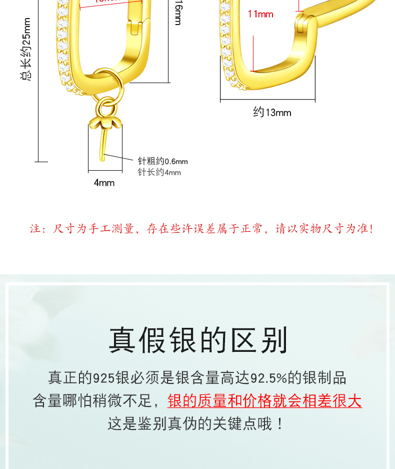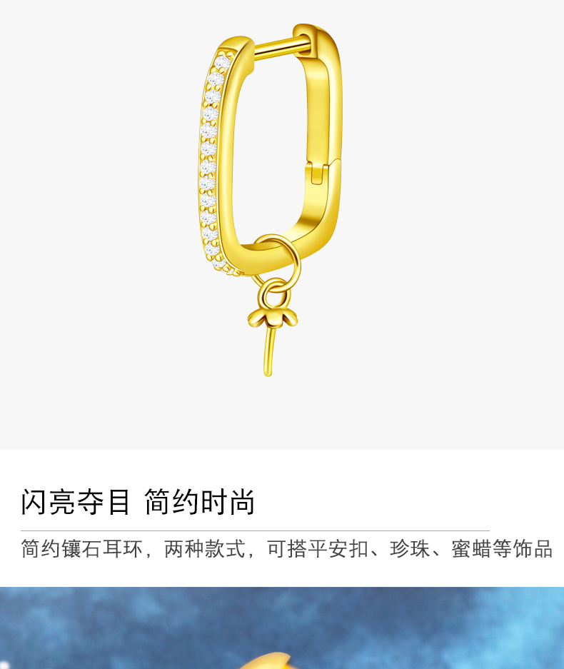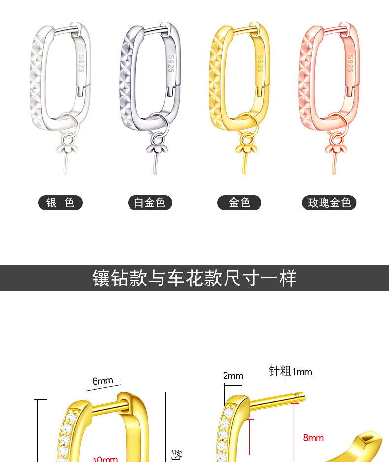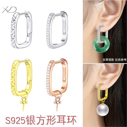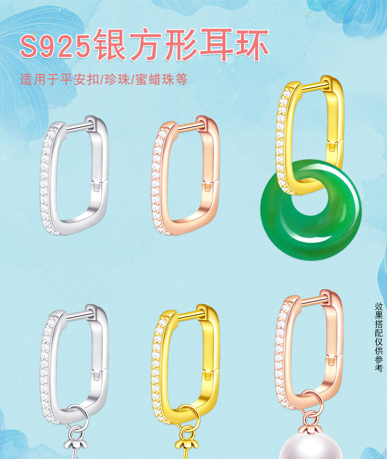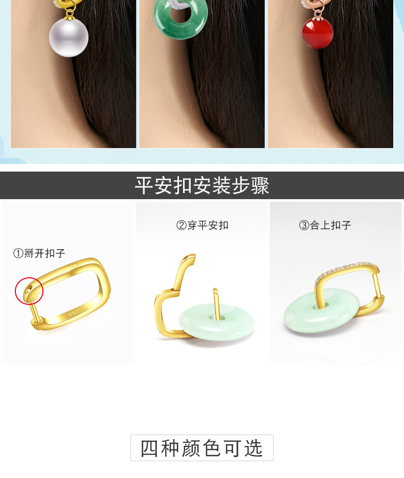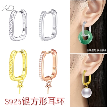 平安环翡翠耳圈S925银平安扣耳扣空托圆环水晶圈圈耳环diy配件