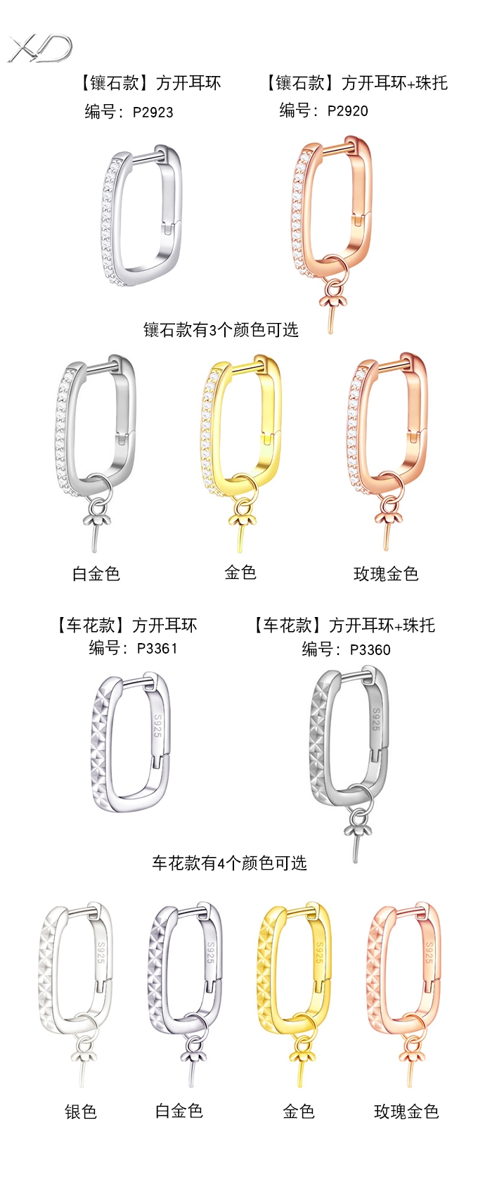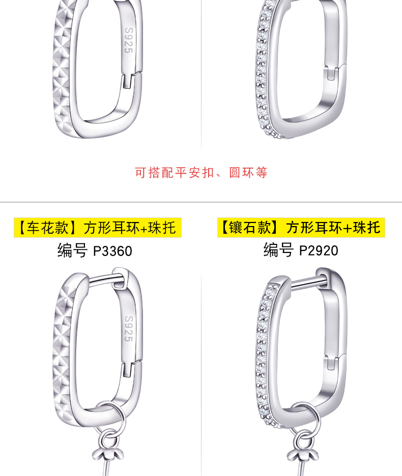 P3360车花款珠托方形耳环玫瑰金色*2.66g