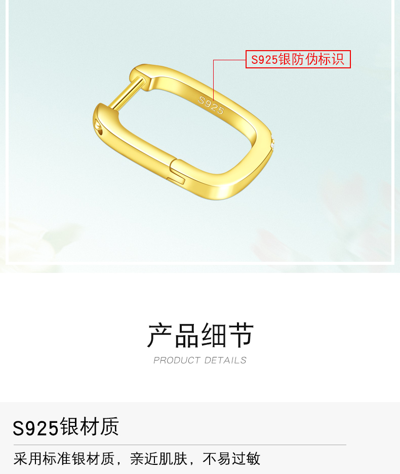 P2923镶石款方形耳环玫瑰金色*2.45g