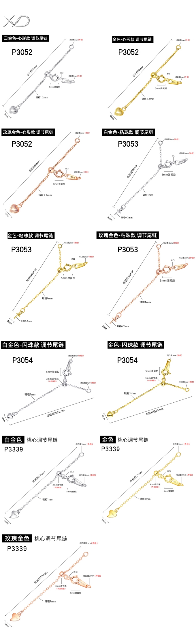 可调节尾链,规格:3cm-5cm,diy手…