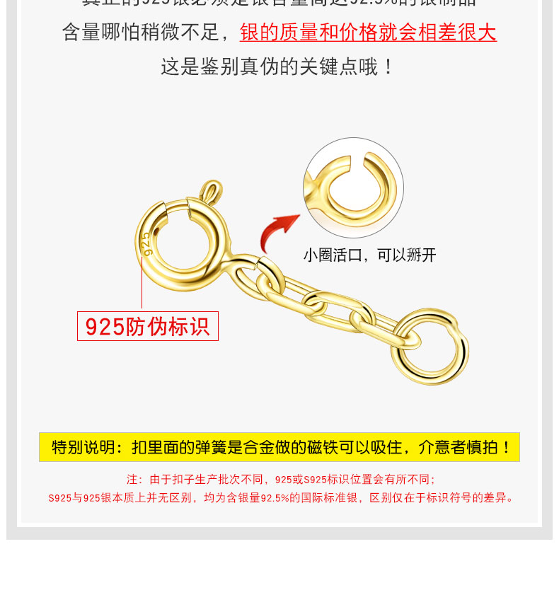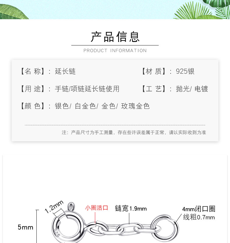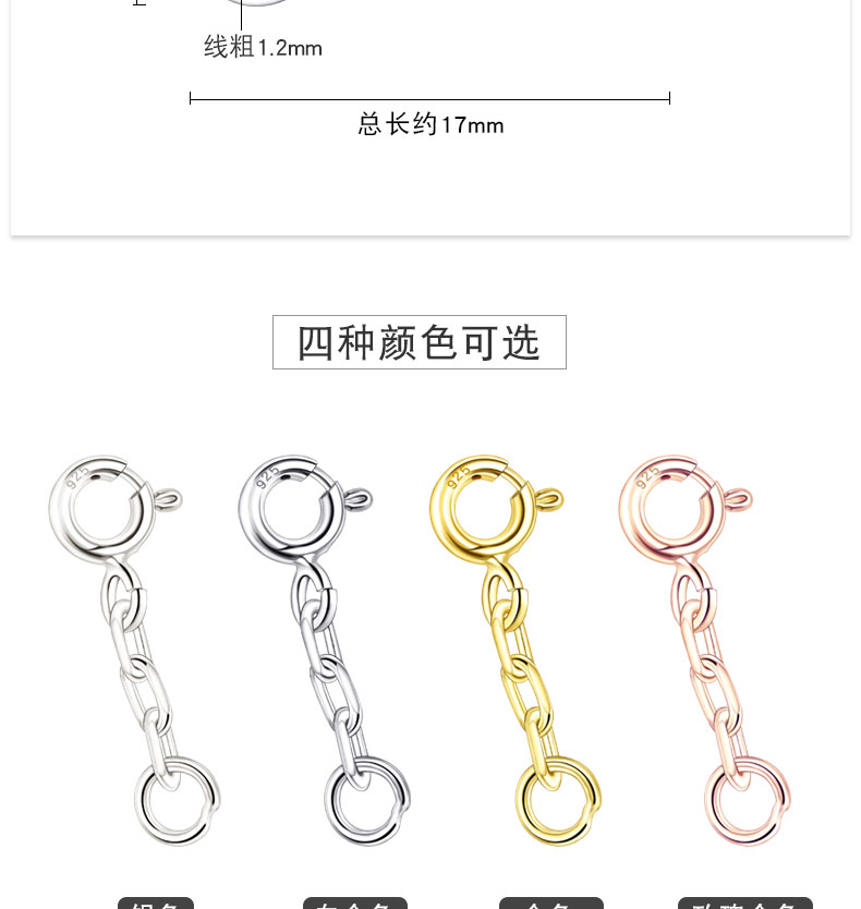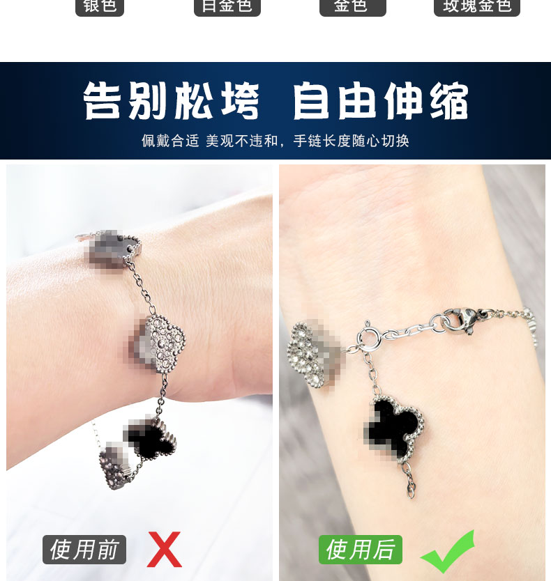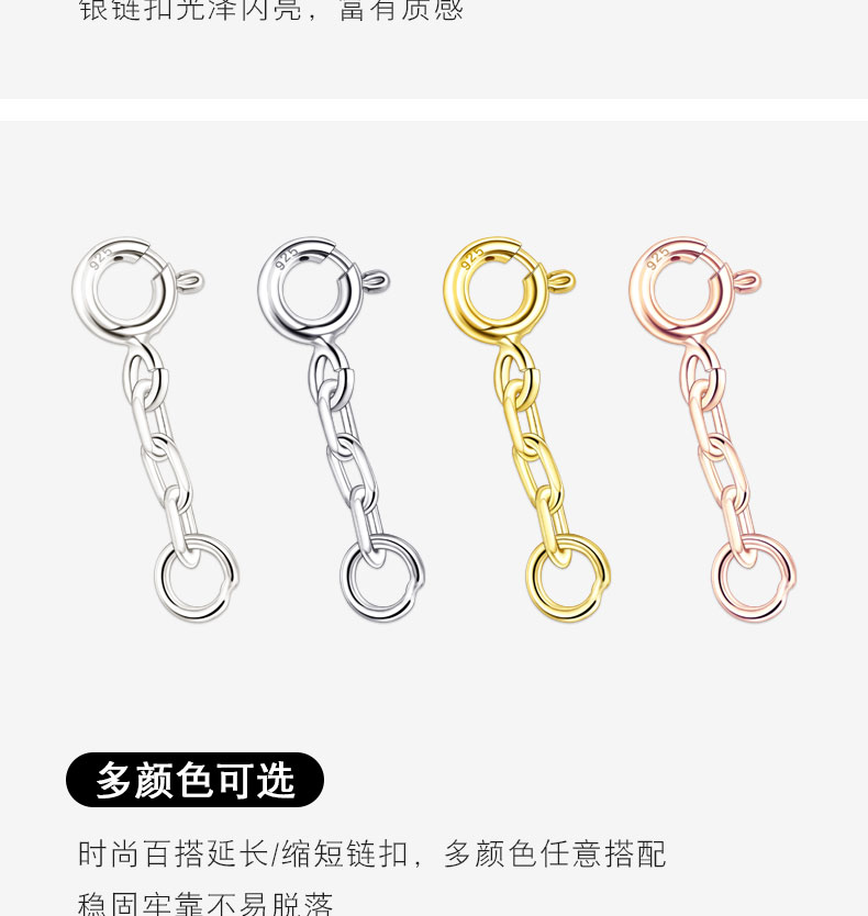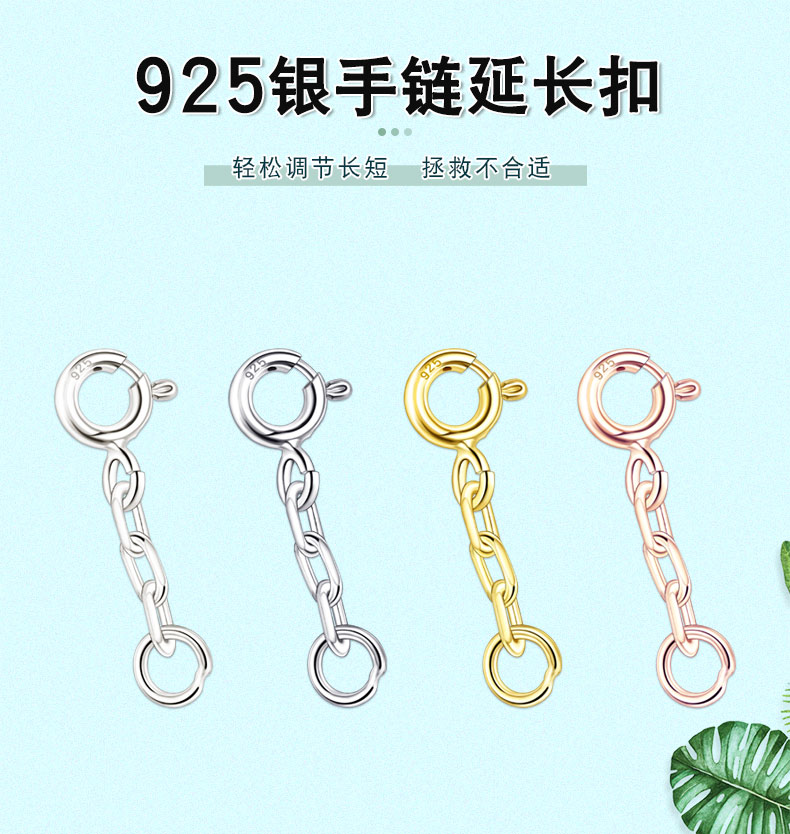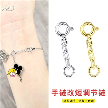 五花手链调节扣S925银延长链弹簧扣头调节加长缩短链条DIY配件