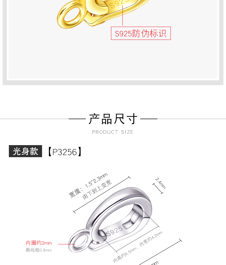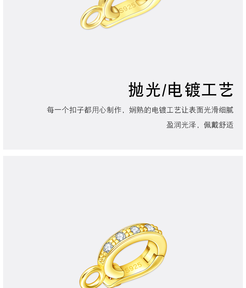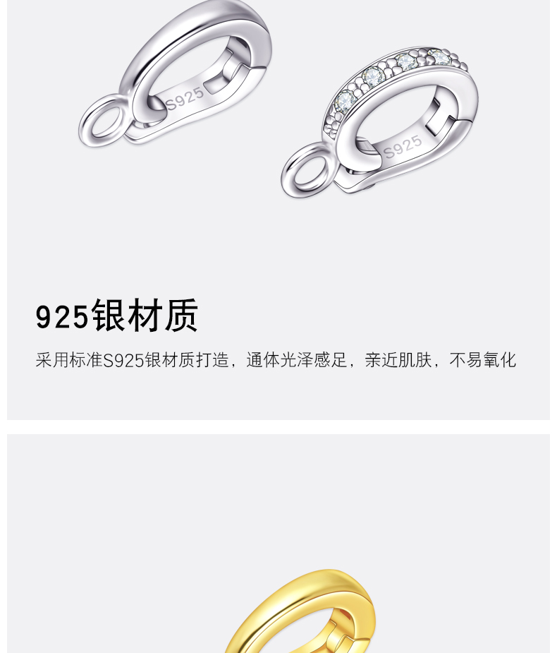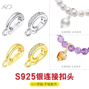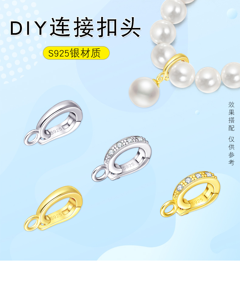 S925银镀18K链接扣珍珠项链尾扣珠扣头可拆卸开口吊坠扣DIY手工