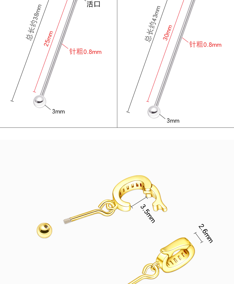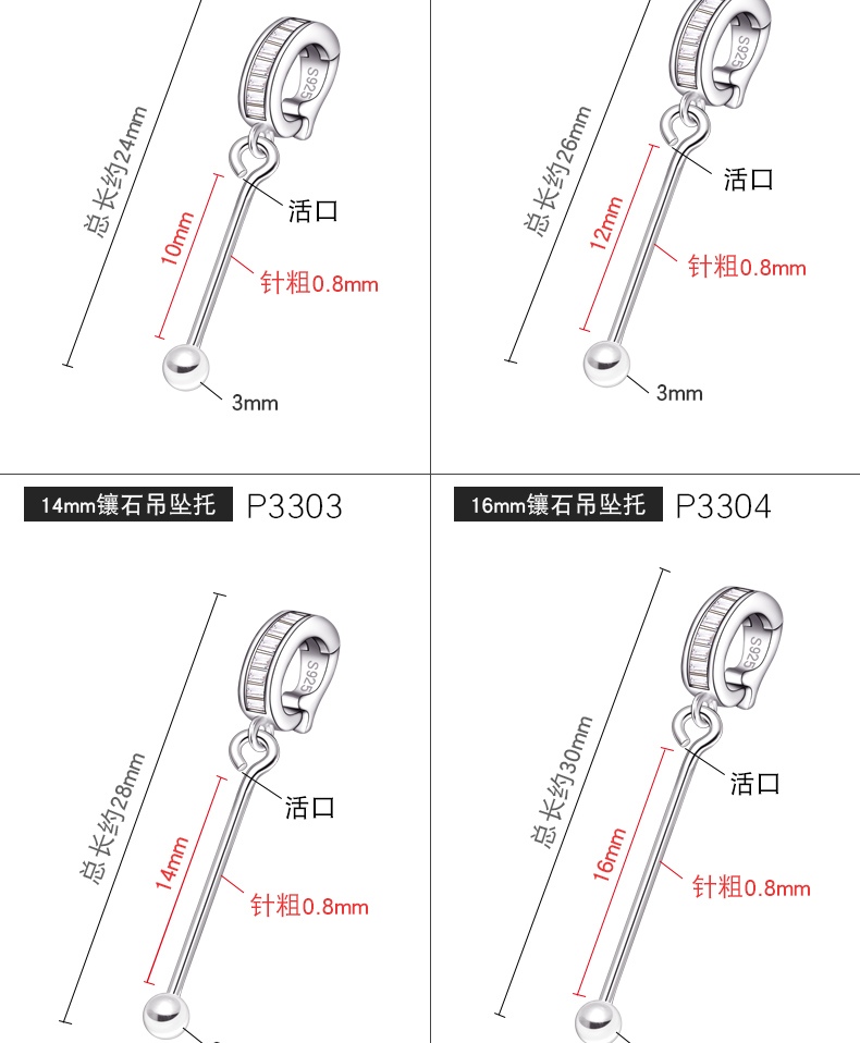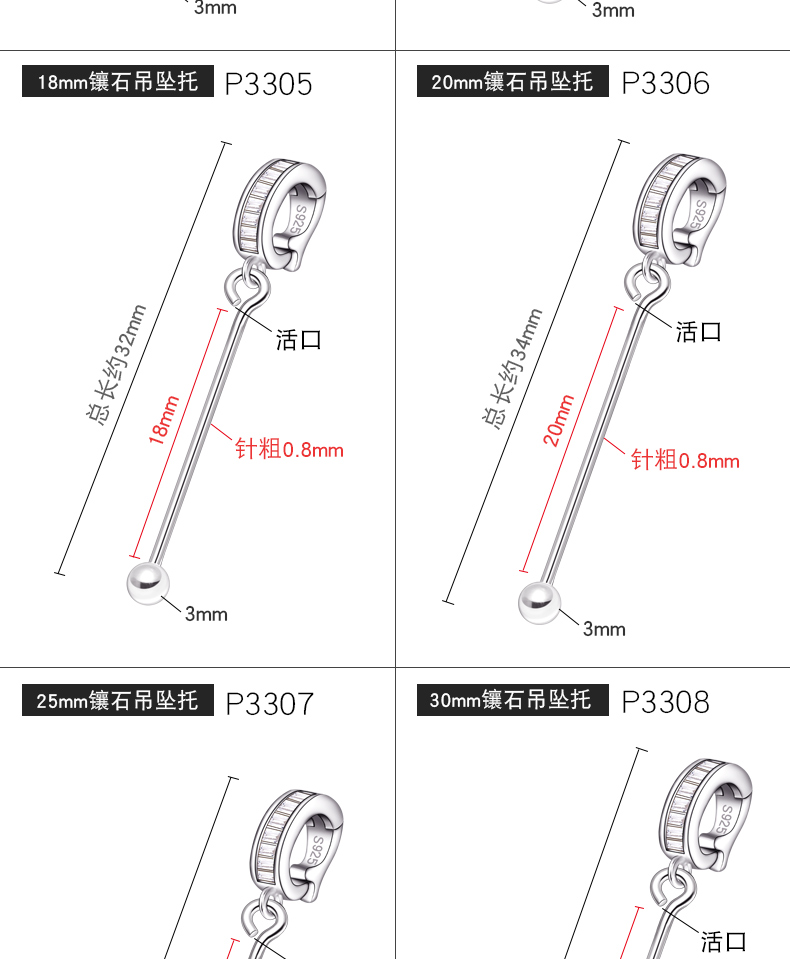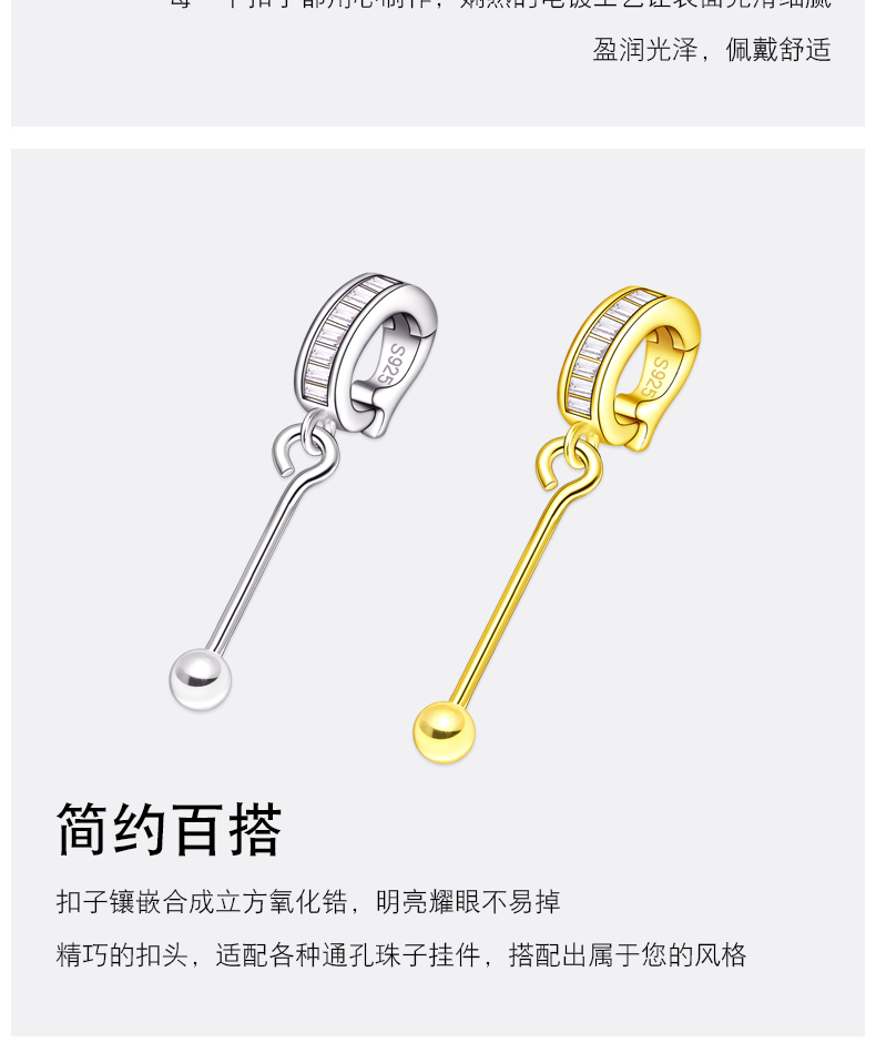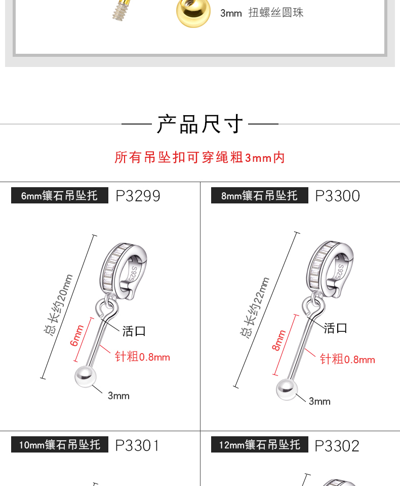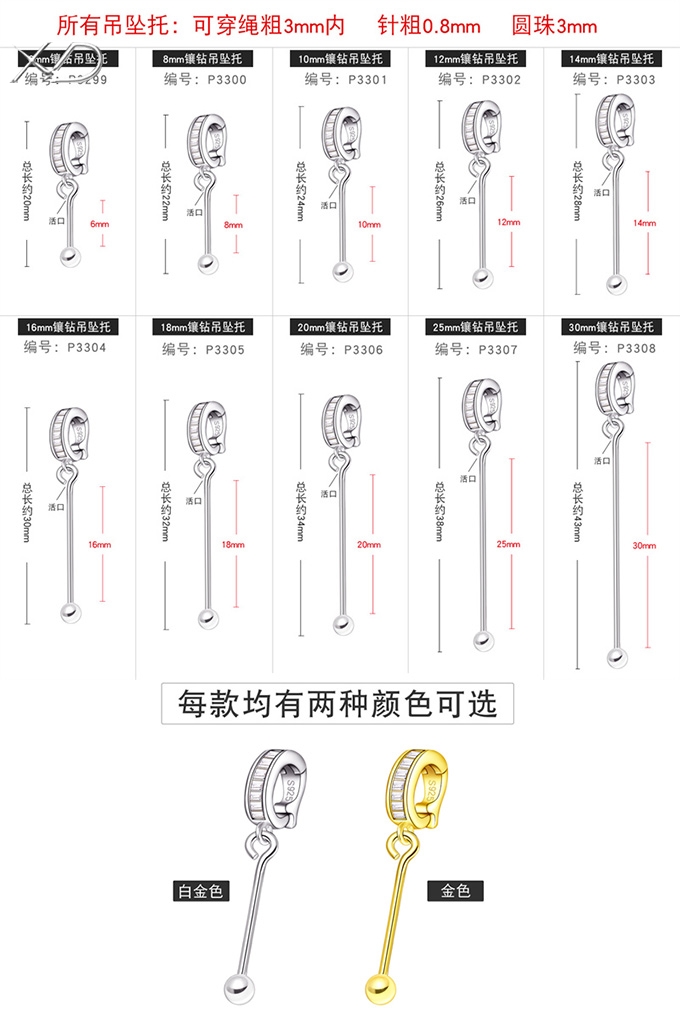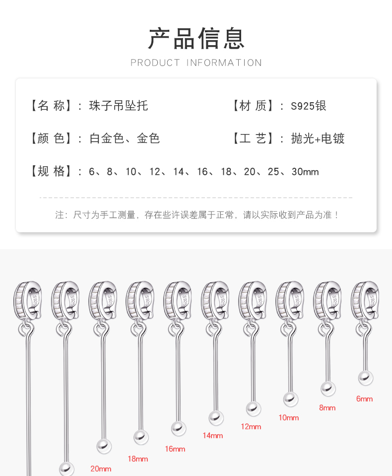 s925银珍珠吊坠扣头diy镀18k金转运珠扣头路路通圆珠通孔扣子 P3303 P3304 P3305 P3306 P3307 P3308