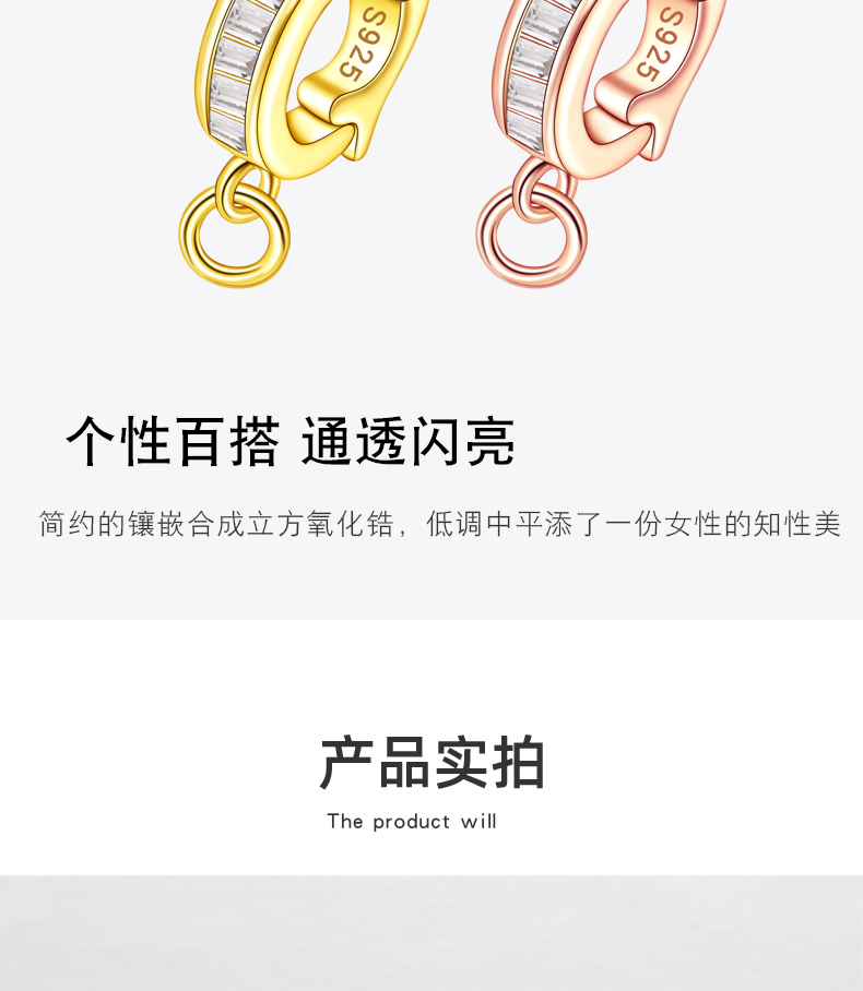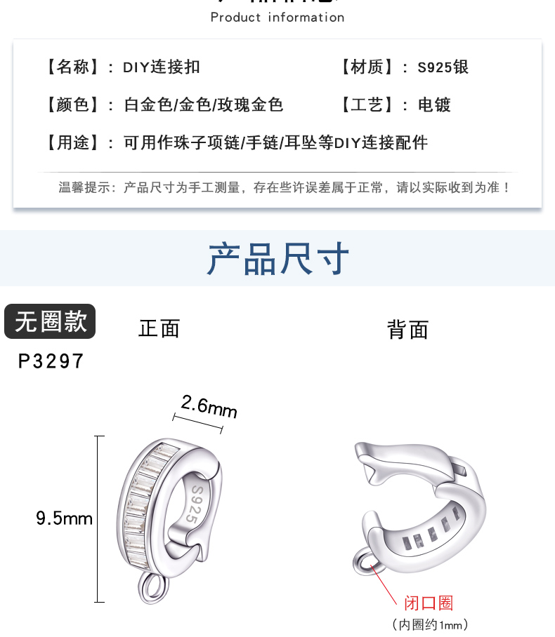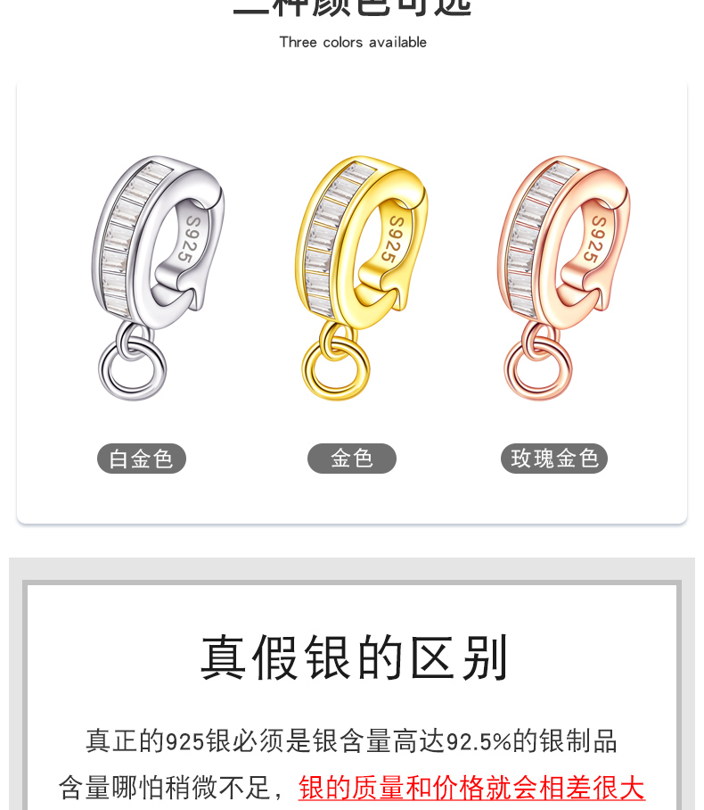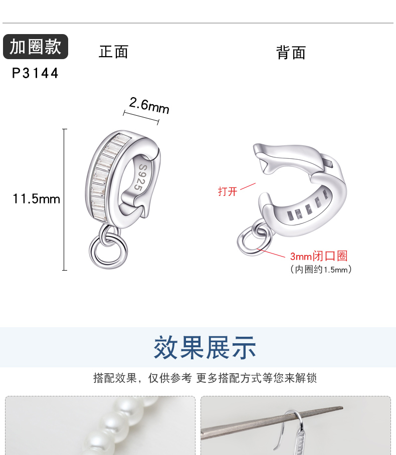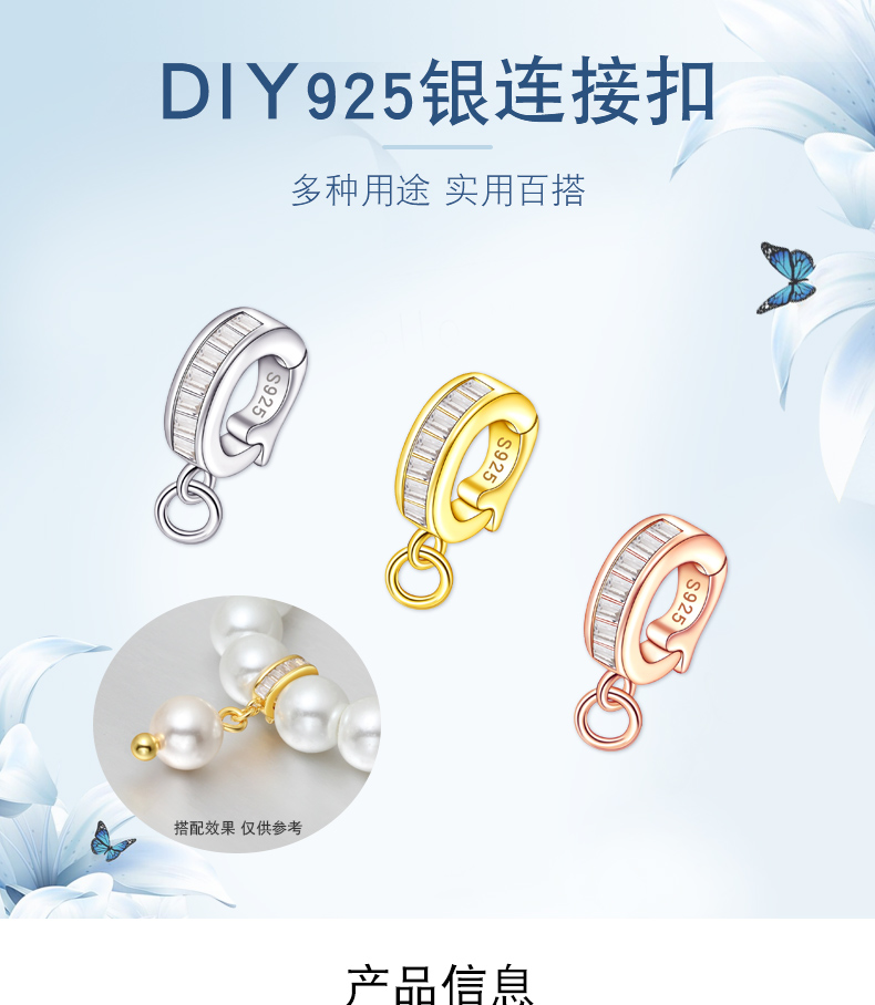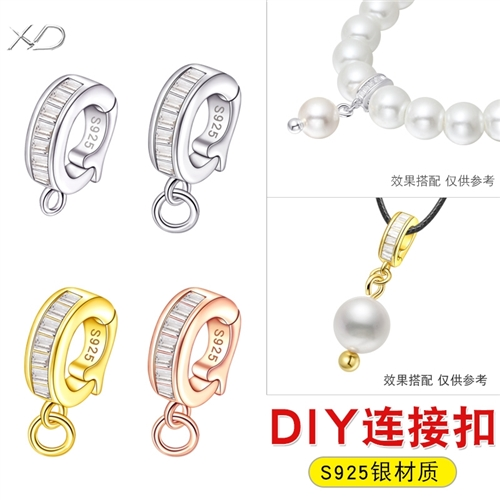 S925银连接扣百搭珍珠项链扣吊坠连接扣手链扣活口卡扣diy配件