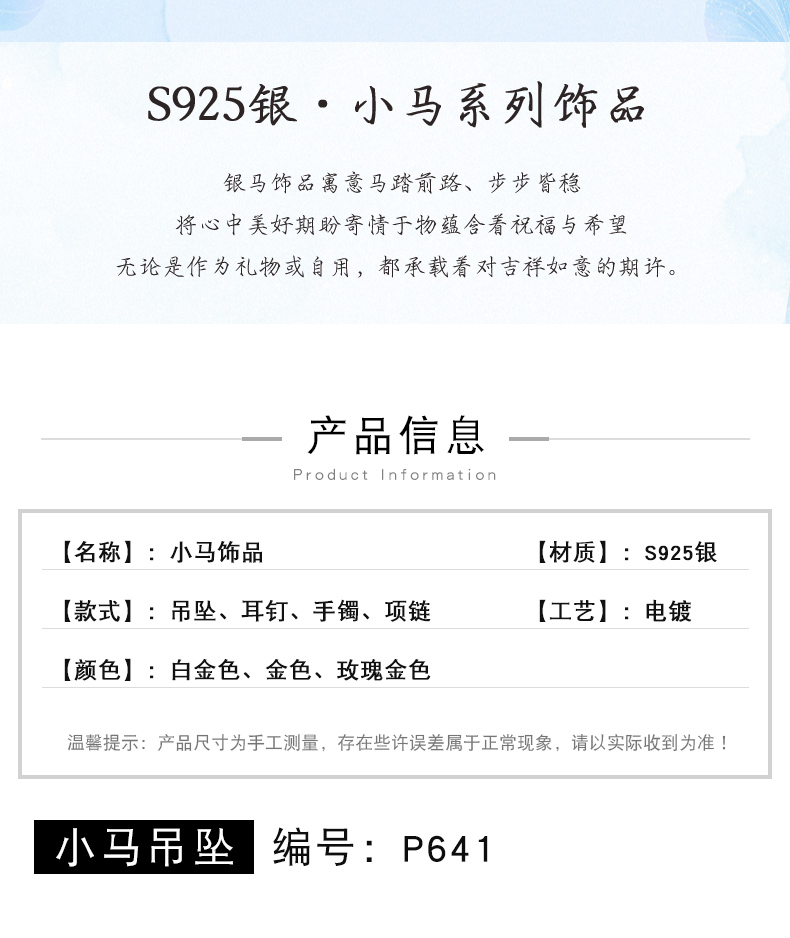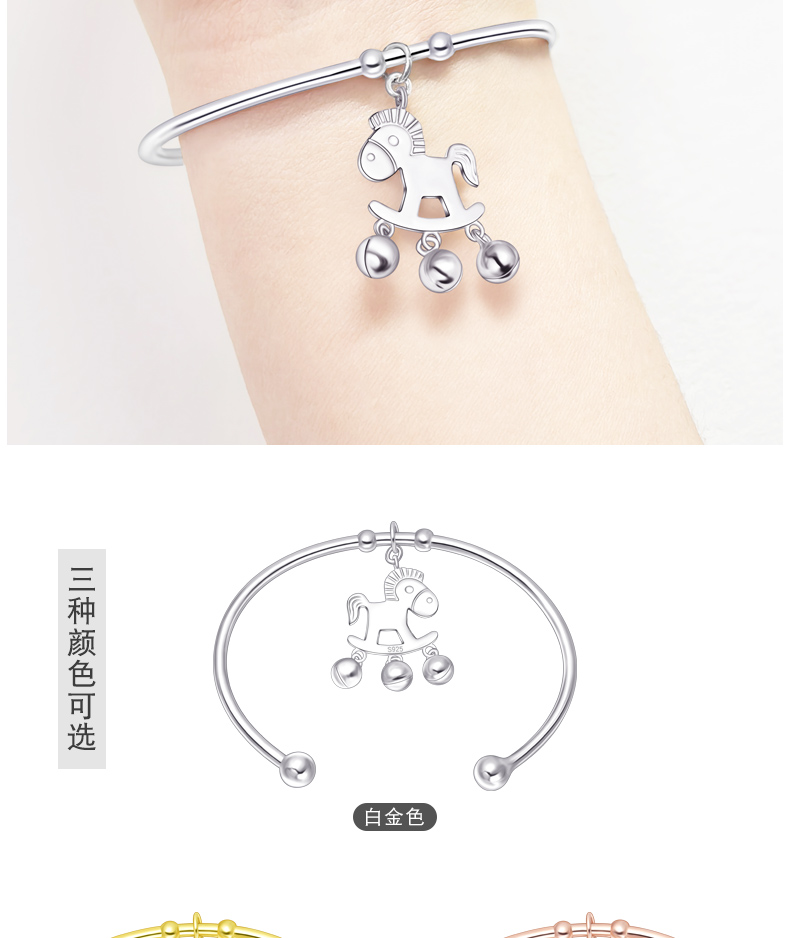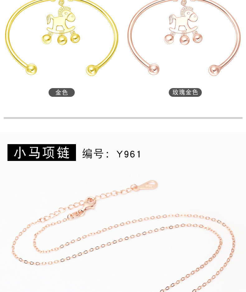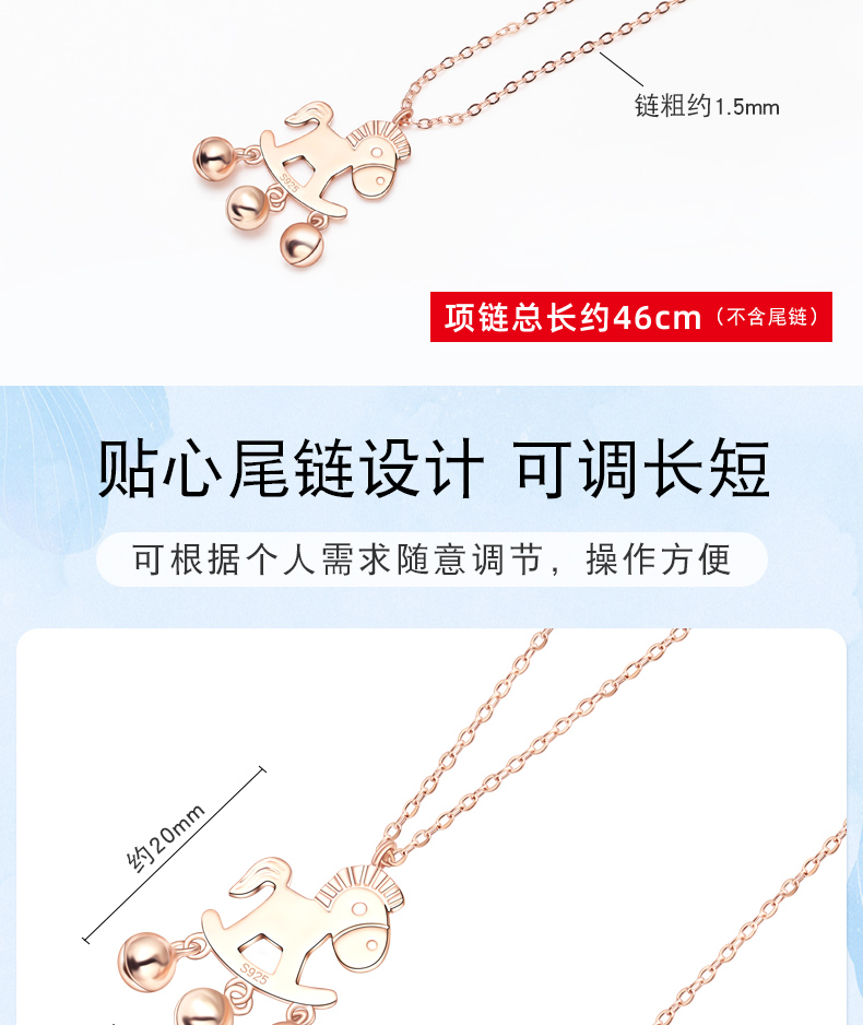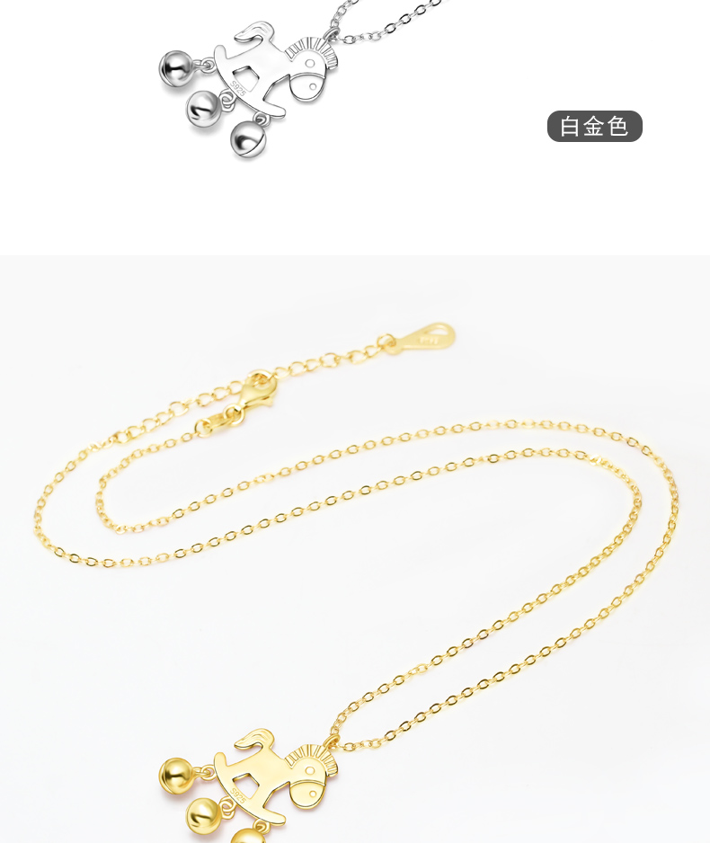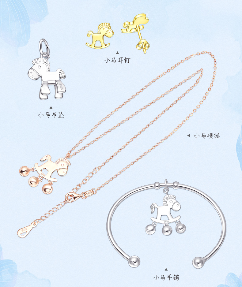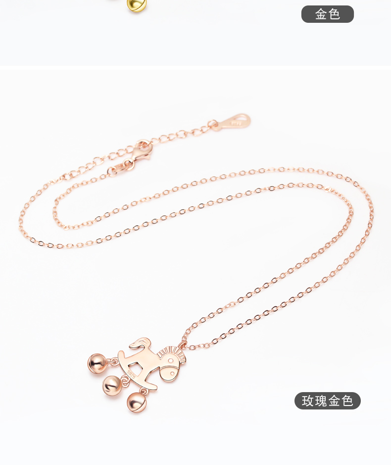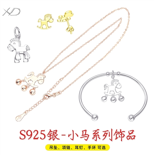 生肖马项链925银镀18K手镯铃铛马吊坠本命马年小木马耳钉送女友生日礼物