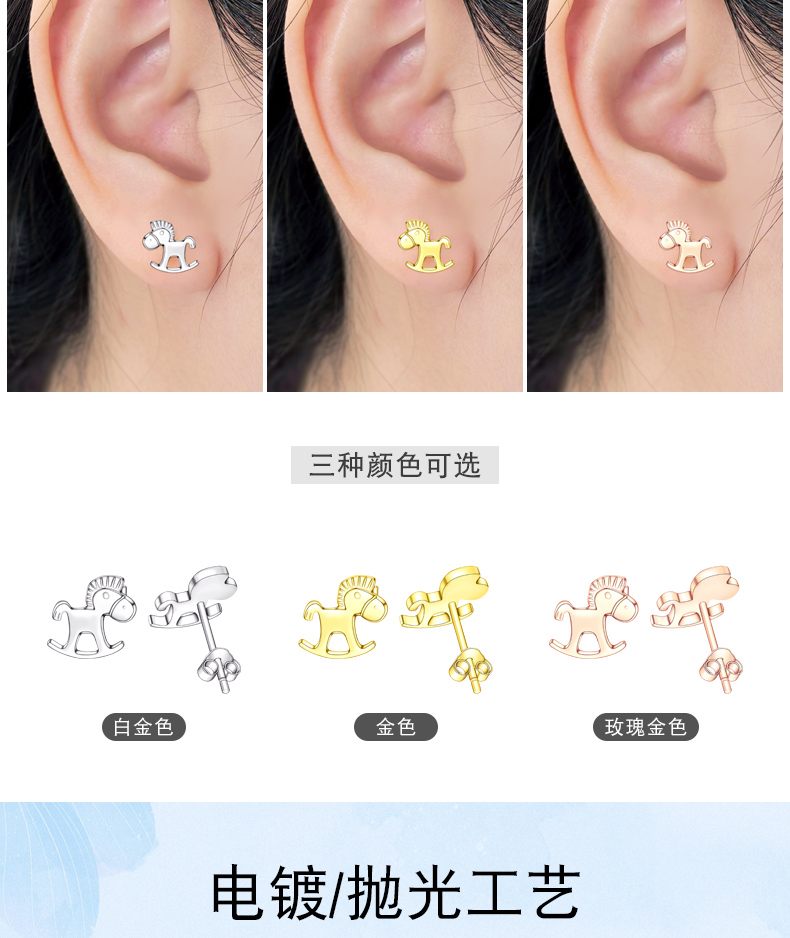 XE012小马耳钉玫瑰金色一对*1.1g