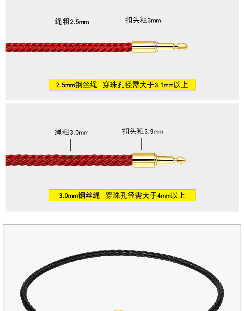 细款防水钢丝绳1.0mm金红色穿串小…