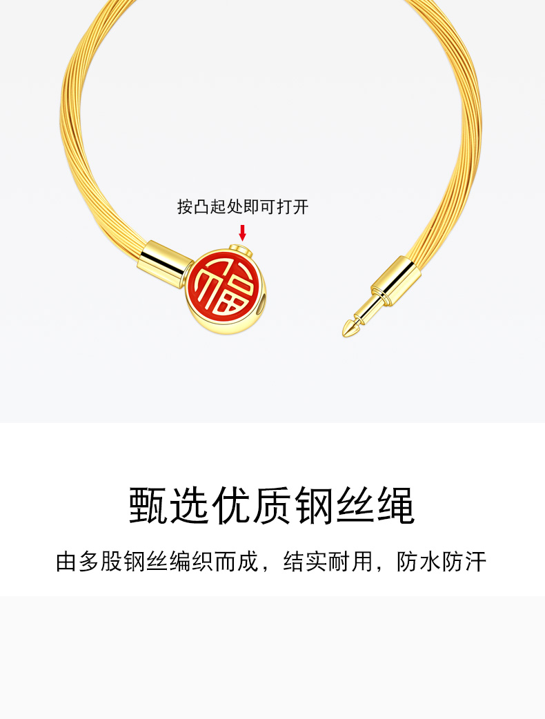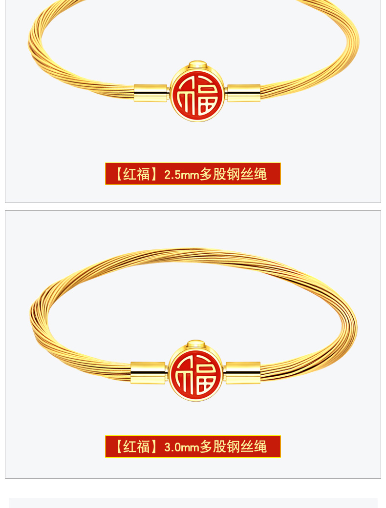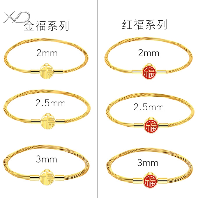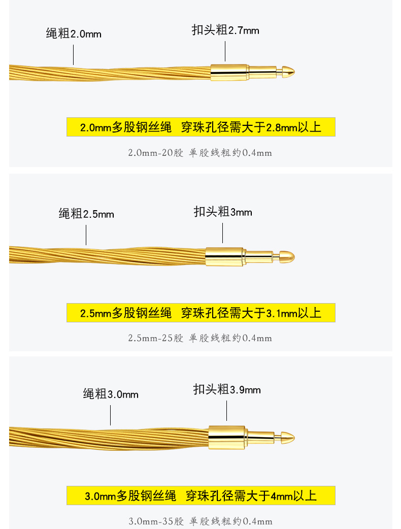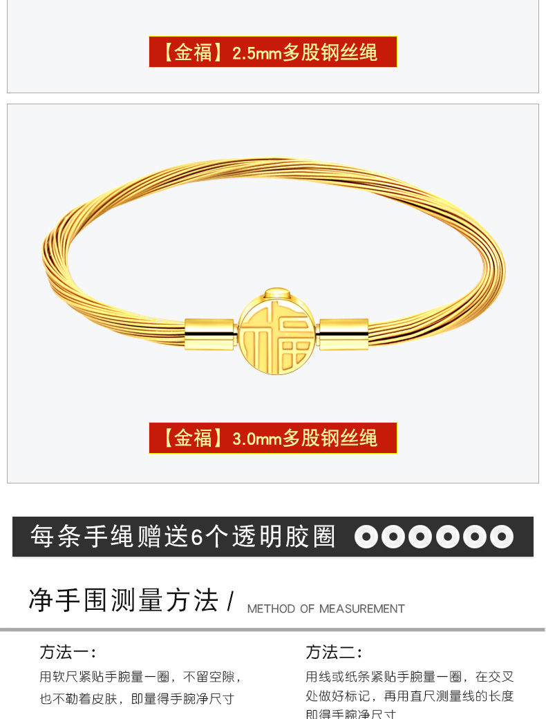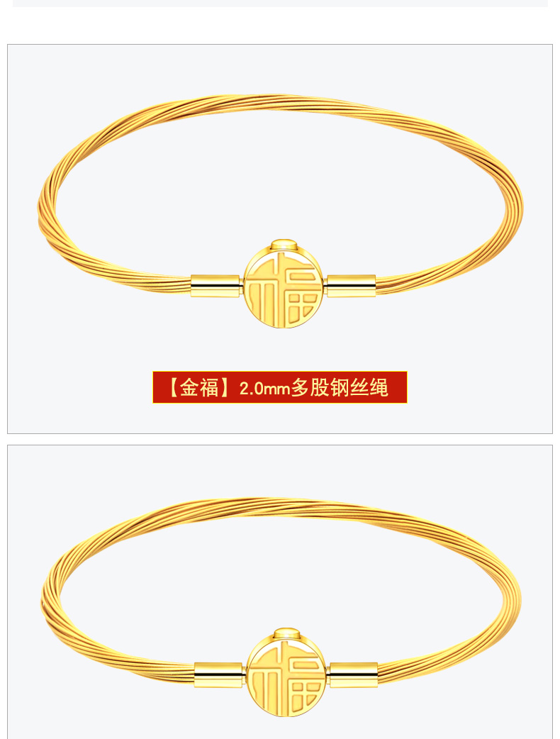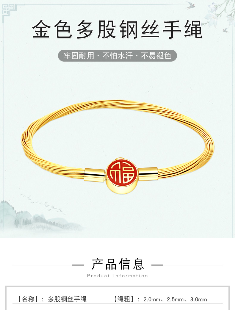 【多股钢丝福字扣】2.0/2.5/3.0mm金色钢丝手绳可穿3D硬金转运珠饰品配绳DIY手链多股 MB366 MB367 MB368