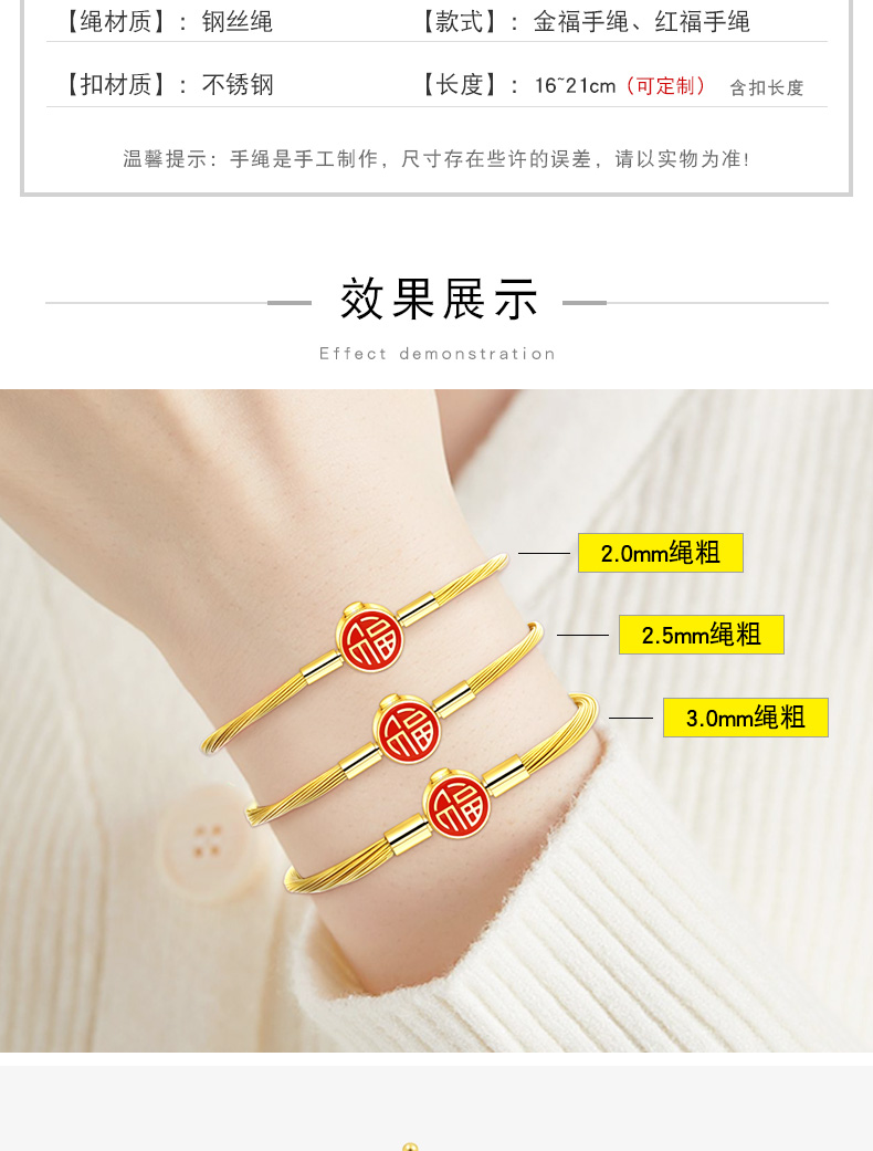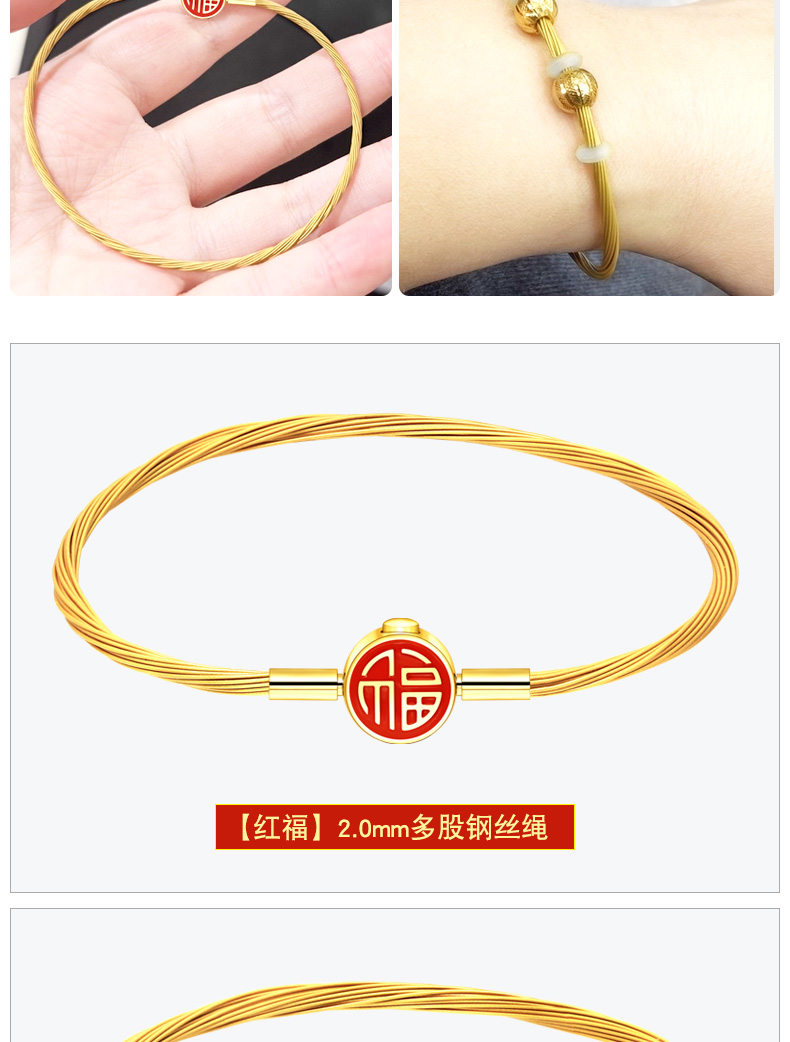 【福字钢丝绳】福字手绳手链可串…