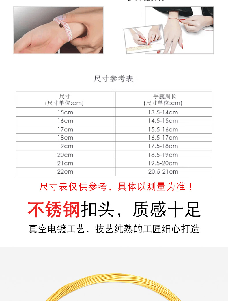 细款钢丝手绳女1毫米金红色穿小孔…
