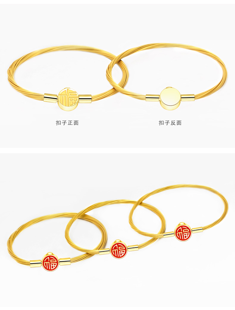 福字钢丝手绳女男本命年可穿3D硬…